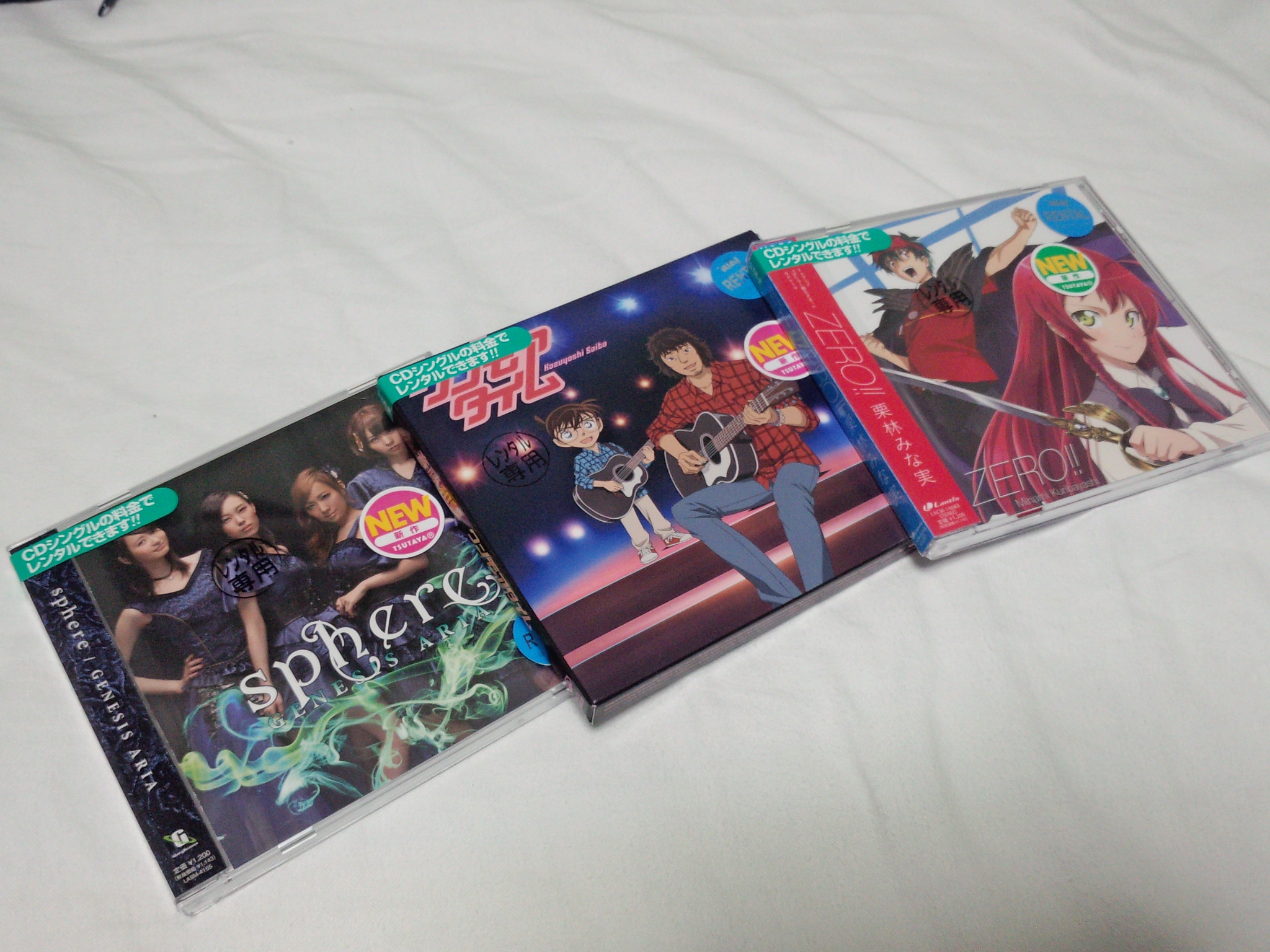 借りたのは全てアニソンで「ワンモアタイム / 斉藤和義」と「ZERO!! / 栗林みな実」と「GENESIS ARIA / sphere」の三つ。